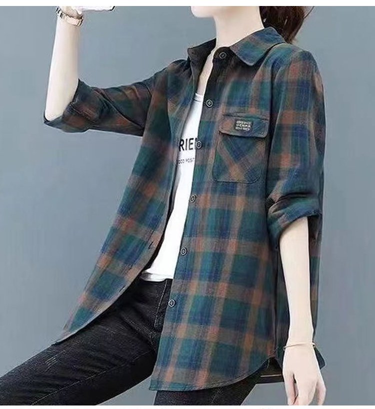 寬鬆顯瘦格紋襯衫